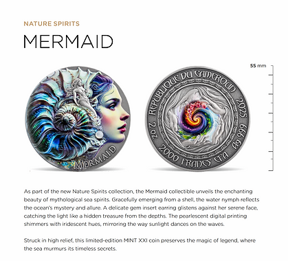 Struck in high relief, this limited-edition MINT XXI coin preserves the magic of legend, where the sea murmurs its timeless secrets.