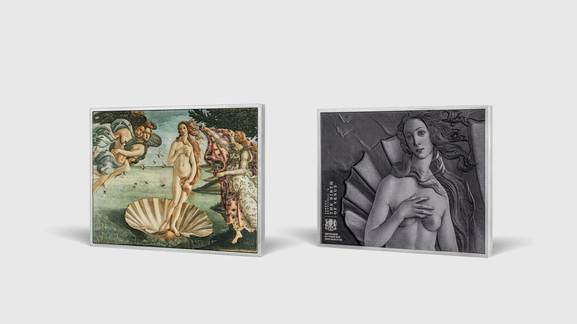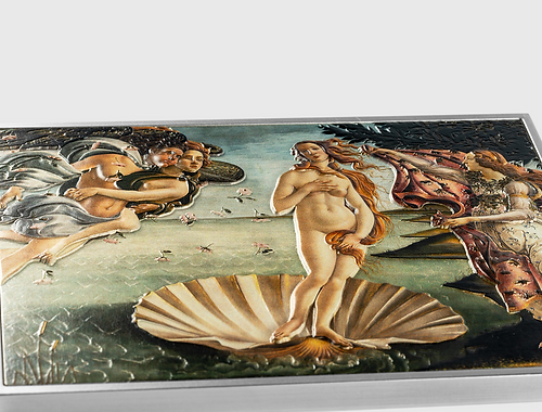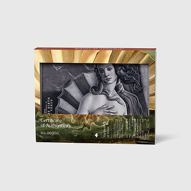 On a canvas of 14.5 x 11cm, a new minting technique called “Bi-Metal Max” was applied to give this piece its remarkable weight while keeping its proportions true to the actual painting. This is made possible by combining 33.5 oz of copper as a base with a top layer of 2 oz of 999 fine Silver, resulting in a high relief. This is a limited edition of 333 pieces only. Each piece is packaged and delivered with a Certificate verifying its edition number and authenticity.