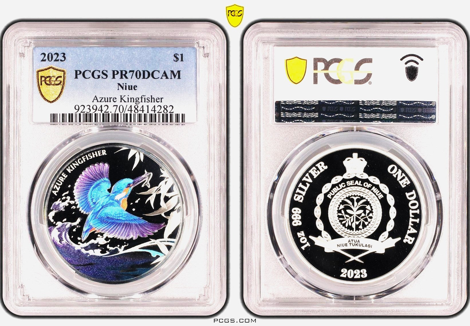 PCGS PR70 Certificate #998 Niue 2023 $1 Azure Kingfisher 1oz .999 Silver Proof Coin with Case, Box and CoA is backordered and will ship as soon as it is back in stock.