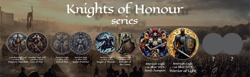 Introducing the 8th issue of the popular series, the WARRIOR OF LIGHT: Knights of Honour American Eagle 1 Oz Silver Coin 1$ USA 2024. This stunning coin features a powerful American Eagle design, symbolizing strength, courage, and freedom. Crafted from 1 ounce of pure silver, this coin is an impressive addition to any collection or a thoughtful gift for a history or coin enthusiast. The intricate details of the design and the high-quality minting process make this coin a must-have for any collector. Don't miss your chance to own this limited edition coin that honors the noble virtues of chivalry and knighthood. Add the WARRIOR OF LIGHT: Knights of Honour American Eagle 1 Oz Silver Coin to your collection today.