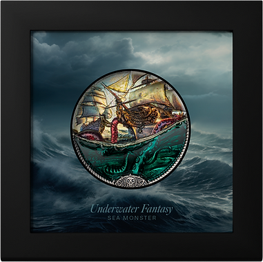 A worthy successor to the Mermaids, this coin transports you to the fascinating world of pirates. The sea monster dominates the scene: its tentacles, skillfully crafted in relief and refined with smooth enamel, rise from the depths to clutch and destroy the ships. Swirling debris bears witness to the destructive power of the monster, while the underwater waves capture the dynamism of the moment in the finest relief work.