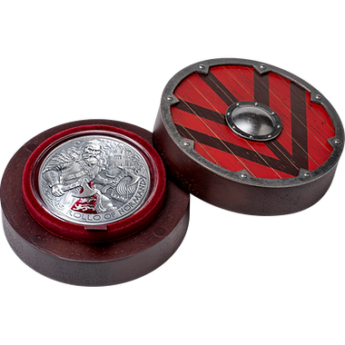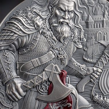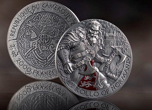 Struck from 2 ounces of .999 fine silver in antique finish, the coin reveals Rollo’s commanding presence in high relief, with digital printing adding vivid detail to his warrior’s attire. Every feature embodies his indomitable spirit and vision as both conqueror and statesman.