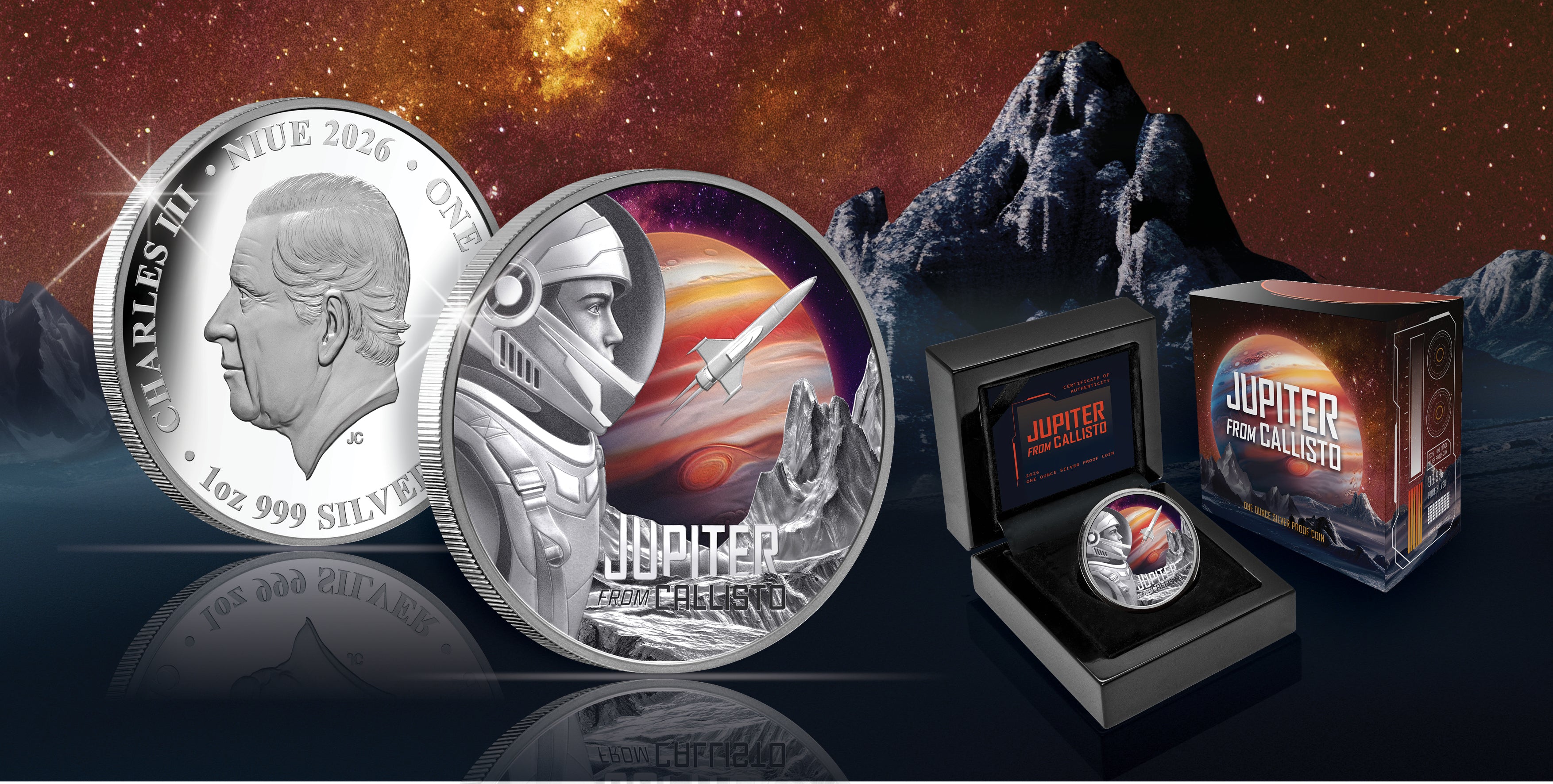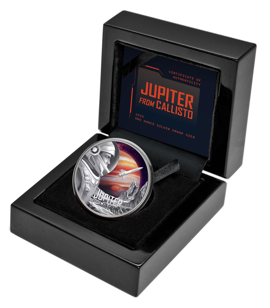An official Niue legal tender issue, the Jupiter from Callisto 2026 $1 1oz Silver Proof is to be enjoyed by the privileged few. Beautifully presented within a case with a numbered Certificate of Authenticity, the limited edition of this spectacular silver superstar has been restricted to an astonishingly low 999!