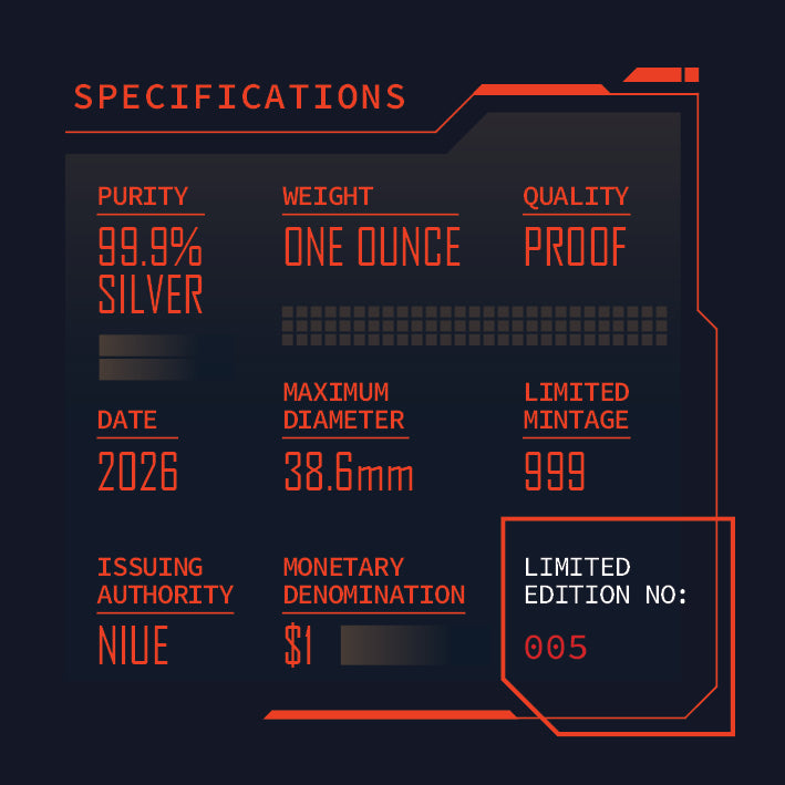 - Struck to the height of Proof quality from 1oz of 99.9% silver.