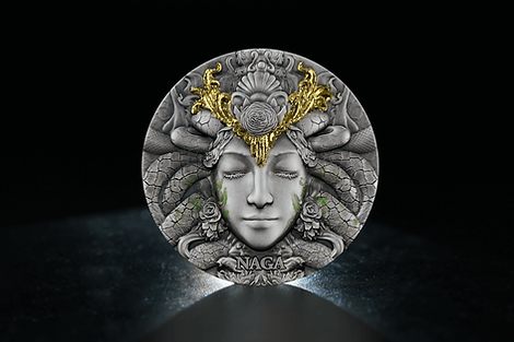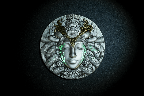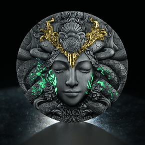 This coin design breathes new life into the ancient Naga myth. The human-like form preserves its divine essence—serene, wise, and timeless. The stone-textured face reflects its earth-bound connection, while the glowing green fissures cutting across the surface represent energy bursting through cracks of creation, a rebirth of ancient power.