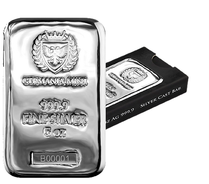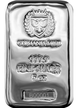 Gold and Silver Bullion Canada is excited to offer the new 5 oz Germania Mint Silver Bar! This Germania Mint bar weighs 5 troy oz and contains .9999 fine silver, making it a desirable acquisition for any investment portfolio. Each bar comes individually serialized, further increasing its collector appeal.