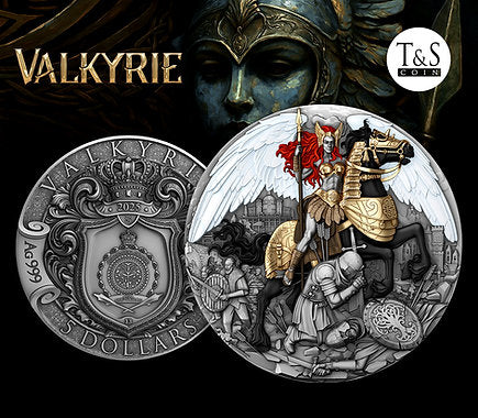 When a silver lightning bolt split the sky and the thunder of hooves echoed wildly through the clouds, a woman appeared — her eyes blazing with the fire of battle. She was a Valkyrie — one of Odin’s divine messengers of war and wisdom - and a powerful new addition to the T&S Coin collection