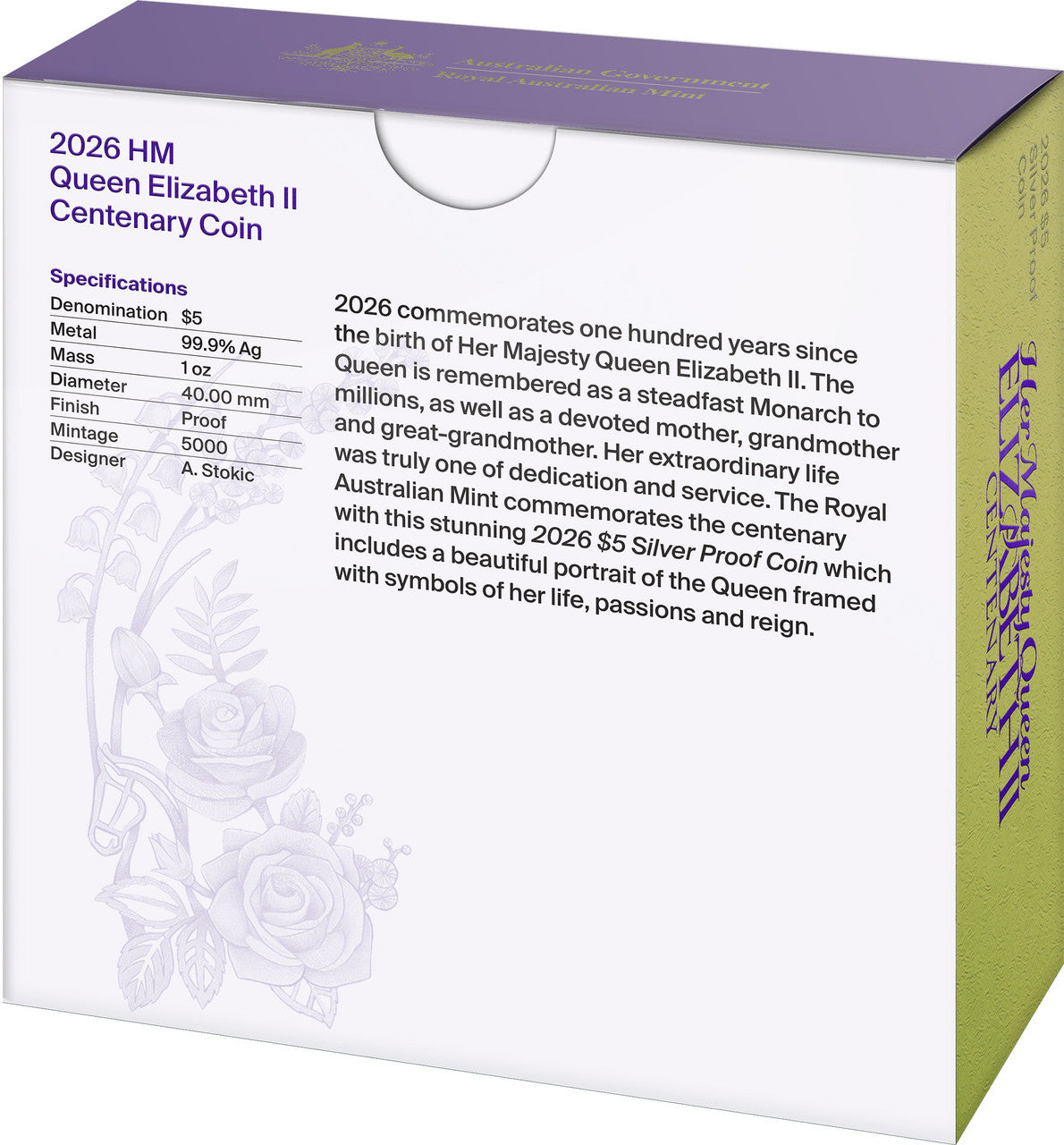 This beautiful 2026 $5 Silver Proof Coin marks the centenary of the birth of Her Majesty Queen Elizabeth II. Queen Elizabeth’s story is interwoven with Australia’s own. Her historic visit in 1954 captured the nation’s imagination, while her effigy appearing on our decimal coins from 1966, becoming a daily reminder of her enduring presence. Yet it was the Queen’s many passions that revealed the woman behind the Crown. Her wartime service with the Auxiliary Territorial Service reflected a sense of duty instilled from youth, that she carried throughout her reign. Equally, her support for the arts nurtured creativity and cultural expression across the Commonwealth for seven decades. The Queen’s love of horses and corgis is well known, while family remained her greatest treasure as a mother, grandmother and great-grandmother. All these facets of an extraordinary life have been stunningly captured in this new commemorative coin.