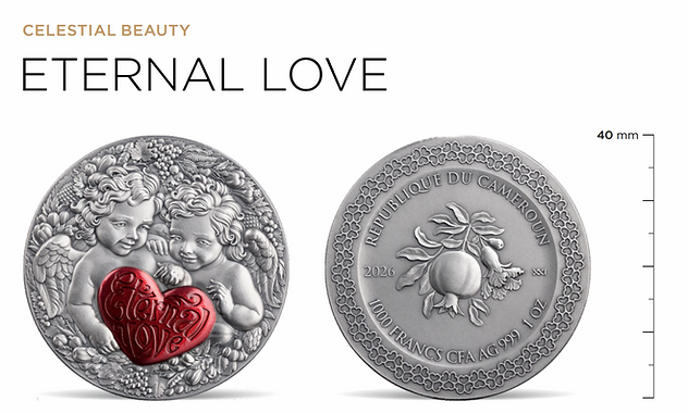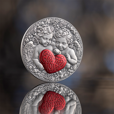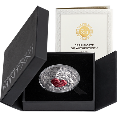 This graceful 1-ounce premium silver coin unveils a timeless allegory of devotion — two cupidsunited as a symbol of eternal love. Their tender embrace and radiant presence reflect the purityof emotion and the harmony of hearts bound together.For the first time in the Celestial Beauty series, the artistry is enriched with digital color elements ,illuminating the scene with delicate shades that accentuate the softness of their forms.