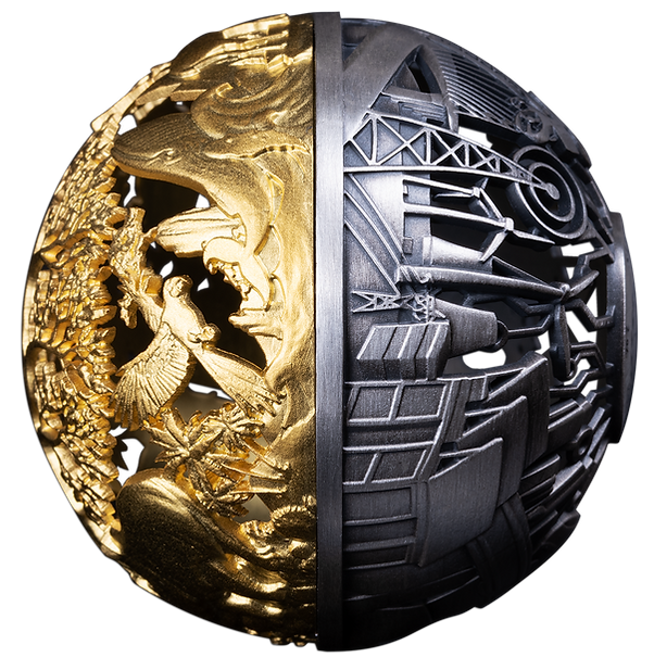 ▶ This intricate detailing of the .999 Silver coin symbolizes the balance of nature‘s vitality and humanity‘s technological progress.
